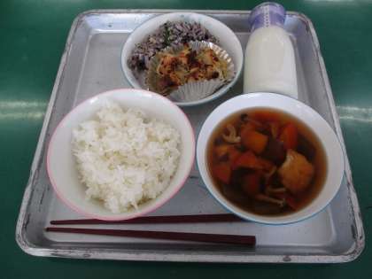 今日の献立は、やさしい笑顔スープ、さけのチーズ焼き、ゆかりあえ、ごはん、牛乳です。