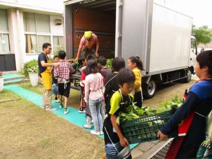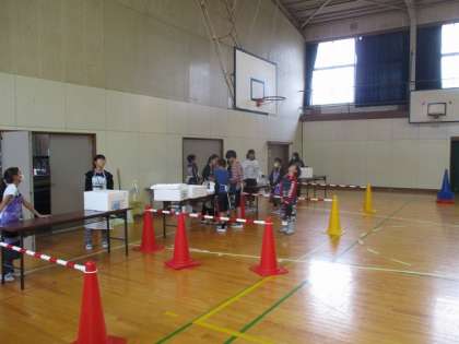 5年生の児童が物産展の準備をしています。開店は、本日、10時からです。たくさんのご来店をお待ちしております。よろしくお願いします。