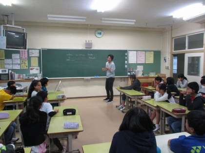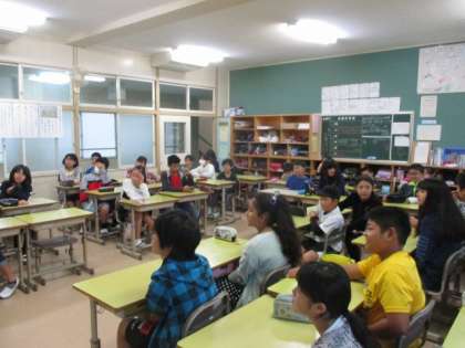 6年生の教室からです。外国語活動の授業でした。学用品を英語で答えていました。