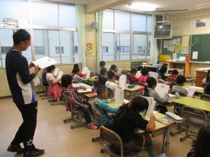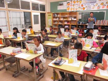 3年生の教室からです。国語の授業でした。物語文を音読していました。