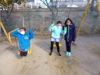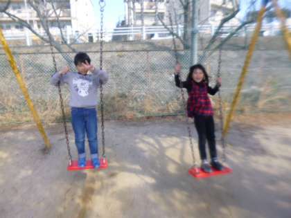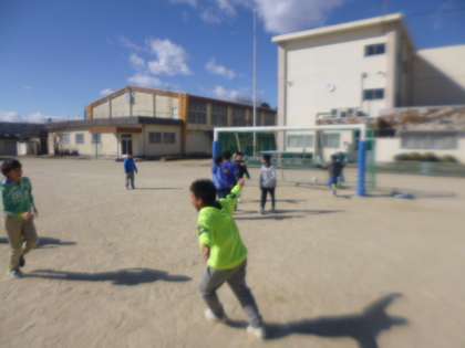 北風がとても冷たい日ですが、外で元気に遊んでいます