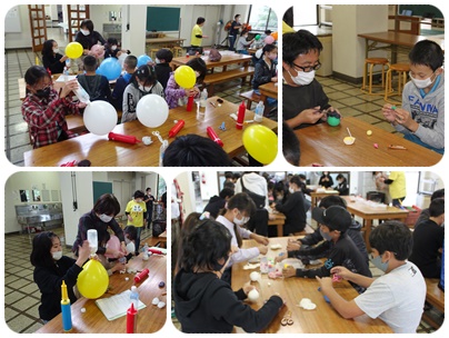 午後の活動は、「バルーンアート」に挑戦です。風船に小麦粉を詰めて、素敵なオリジナル人形ができました。
