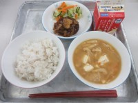 『麦ごはん・牛乳・じゃがいものそぼろ煮・小松菜と生揚げのおかか炒め』です!
