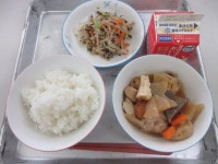 『麦ごはん・牛乳・かぼちゃのみそ汁・ツナの甘辛煮・ハリハリづけ・手巻きのり』です!