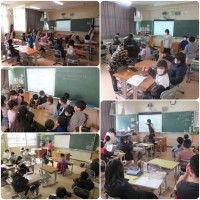 曇り空の朝です。今朝も交通指導員さんに見守られ、子どもたちが登校しています。