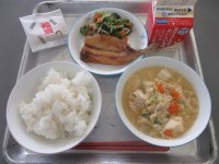 『ごはん・牛乳・チンゲンサイと卵のスープ・豚肉のカシューナッツ炒め・ヨーグルト』です!