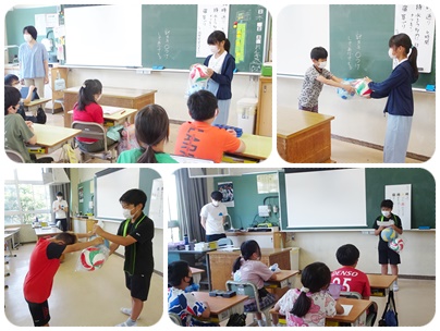 昨年度までPTAの皆さんが集めていただいたベルマークをボールに交換しました。届いたボールを代表委員会の人たちが、各クラスに配りました。昨年度までベルマーク回収運動にご協力いただいた皆様、ありがとうございました。