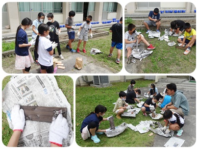 昨日、野外活動から戻った5年生、今日は少し遅めの登校です。健康観察の後、炊飯活動の道具を片付けたり、焼き板を磨いたり、元気に活動しています。