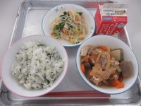 ごはん・親子汁・五目豆・冷凍あんず・牛乳でした。