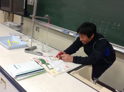 右側の写真は、理科の実験の準備をしているところです。高学年になると、たくさんの器具が必要だったり、ちょっとした環境の変化で結果が変わってしまったりと難しい実験をする時があります。そんな時は前日に予行実験をする時もあります。