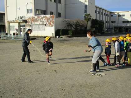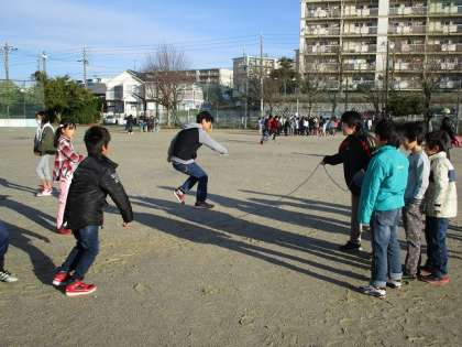 今日は、昨日の大雨もあがり、よい天気となりました。なわとびの練習ができるか心配しましたが、運動場の水たまりをさけた場所で、なわとびの練習をしました。日に日に上達していきます。