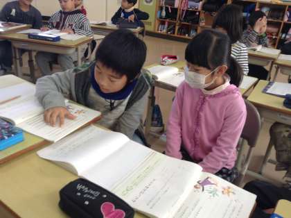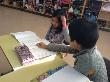2年生でも友達と協力し合い、学びあう姿が見られます。授業の中で、子どもたち同士の交流から生まれる学びを大切にしていきたいと思います。