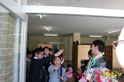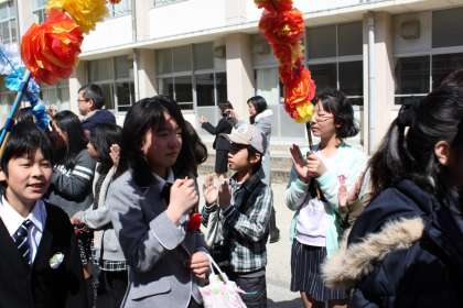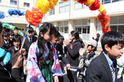 卒業式の後は、在校生保護者でお見送りをしました。涙を流す子どもがとてもたくさんいました。すばらしい小学校生活の締めくくりでした。未来に向かって羽ばたいていってください。