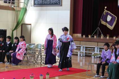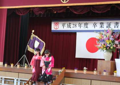 入場の様子です。素敵な晴れ着や制服を身にまとい、表情も晴れやかです。