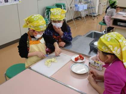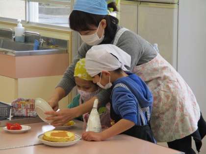 今日は、久しぶりの雨です。家庭科室では、またまたおいしそうなにおいがしてきました。扉を開けると、1年生が上手にケーキを作っていました。作ったケーキを1年生の子が持ってきてくれました。とてもおいしかったです。