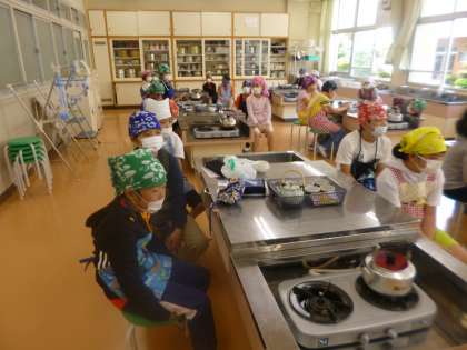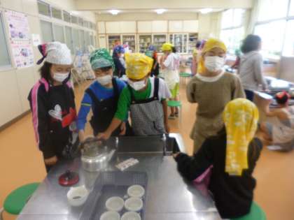 太陽学級は、毎朝運動場で体操やランニングをして体力づくりを行っています。5年生は家庭科でお茶のいれかたを実習していました。