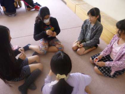 先生と子どもとで真剣勝負しています。さすが6年生、仲良く楽しく遊んでいました。片付けもきちんとできました。