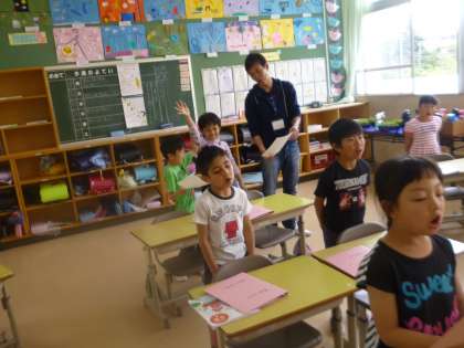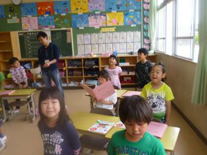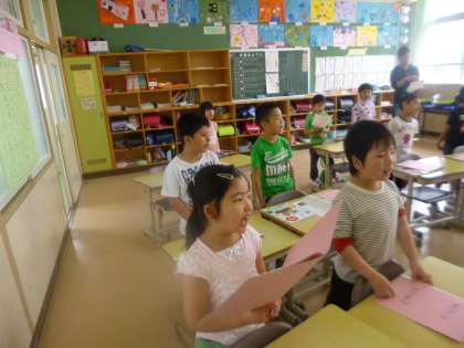 今月の歌「風になりたい」を楽しそうに歌っています。体で表現している子もたくさんいました。