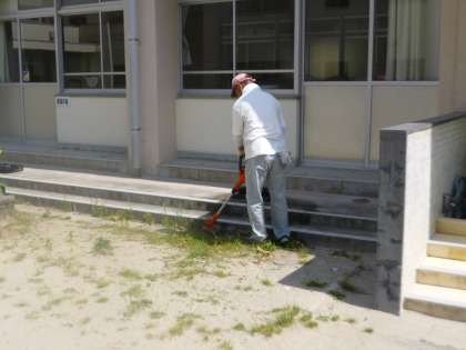これから夏にかけて、運動場や中庭に雑草がどんどんはえてきます。掃除などでも草とりをしますがなかなか追いつきません。暑い中用務員さんが一生懸命除草作業をしています。とてもありがたいです。