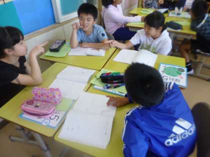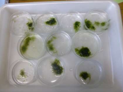 5年生の理科では、グループでメダカの卵の観察をしていました。