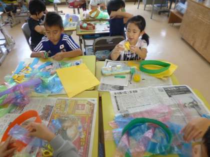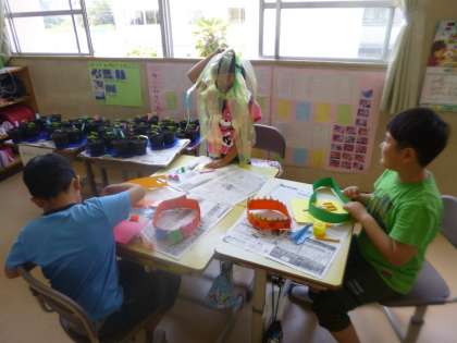 2年生は図工でファッションショーの準備をしていました。