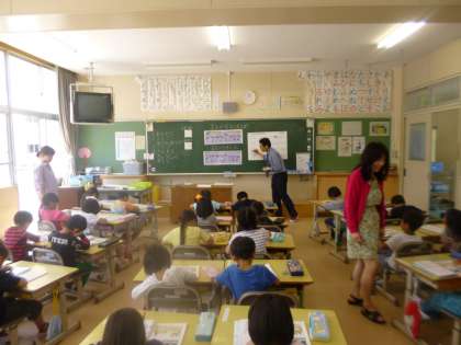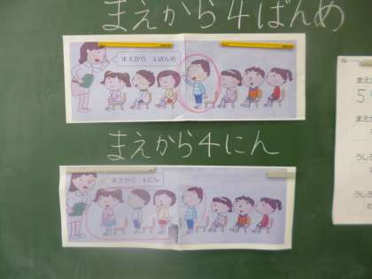 1年生の算数です。「なんばんめ」という勉強をしています。1年生にとってなかなか難しい内容です。