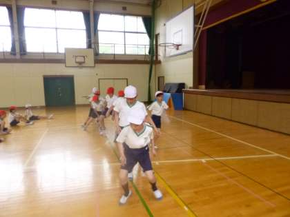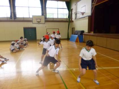 4・5・6年生は50m走 ソフトボール投げ 立ち幅跳び 反復横とび 長座体前屈を行いました。反復横とびは俊敏性を測定する種目です。