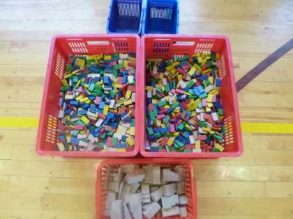 今日の授業後は移動児童館の「わくわくタイム」がありました。様々な玩具が準備されています。