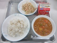 今日の献立は、コンソメスープ スペイン風オムレツ ミニフレンチサラダ チキンライス 牛乳です