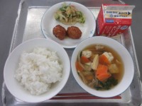 今日の献立は、ふだま汁、ごまあえ、とりめし、牛乳です。