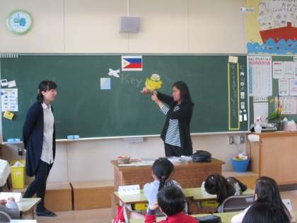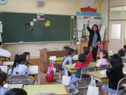 2年生の教室からです。今日は、英語の先生が来校されました。先生が、英語で自己紹介をして、質問されたことに挙手をして答えていました。