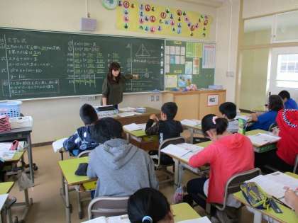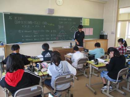 6年生算数の授業の様子です。2つの教室に分かれて、少人数で授業をしています。みんな落ち着いて問題を解いていました。