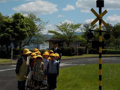 踏切の渡り方も学びました。最後は、全員で記念撮影です。