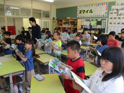 3年生の教室からです。音楽の授業をしていました。元気な歌声が聞こえてきました。