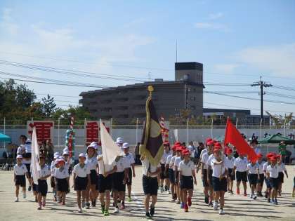 今日は、絶好の運動会日和です。入場行進の後、開会式が始まりました。