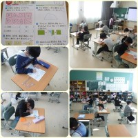 6年生の教室では、図工の授業をしていました。版画の下絵を考えて描いていました。