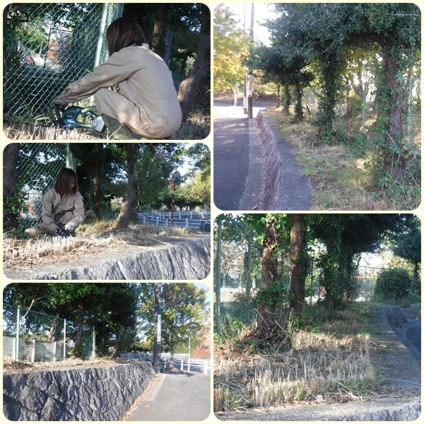 この箇所は見通しが悪いため、草刈りをすることで少しでも見通しが良くなるように草を刈りました。石垣の高さがあるため、完全とは言えないまでも以前よりは見通しが良くなりました!