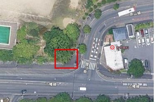次年度のみつば小学校に向けての通学路整備として、赤枠の草刈りを行いました。