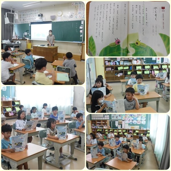 1組は国語の授業で、「やくそく」の教材を音読して確認していました。