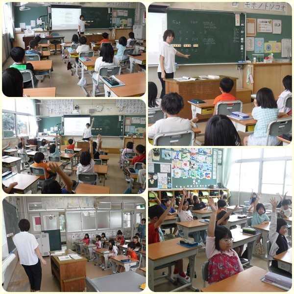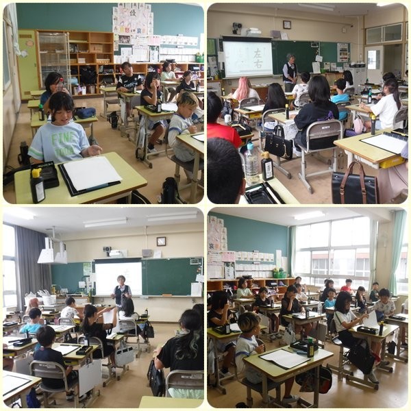 3時間目の様子を見てみると、1~2年生は、体育館でスポフェスの競遊(ダンス)の練習でした。太陽学級は個別学習ですが、2けた×2けたの筆算や、4けた÷1けたの筆算などを真剣に解答していました。3年2組は算数「重さ」の単元で、ばねばかりを学んでいました。3年1組は道徳の「親切・おもいやり」について『教えてあげる?持ってあげる?』の教材について話し合っていましたが、「これは優しくないよねぇ!」と真剣に話し合いが盛り上がっていました。5年生は理科「台風と天気の変化」の単元で、台風について調べていました。4年1組は国語「秋の楽しみ」で、秋ならではのものを想像したり詳しく説明したりしていました。4年2組は図工「読書感想画」が最後の段階でした。6年生は算数「データの整理と活用」で、平均や中央値について学んでいました。日本語教室は、国語の物語文「ちいちゃんのかげおくり」の読み取りを頑張っていました。