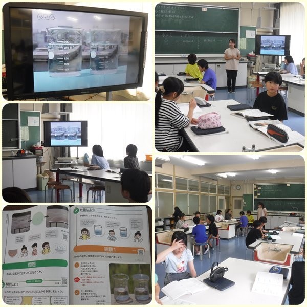 1組は理科の授業で、水は空気中に出ていくのかを映像を見て確認していました。