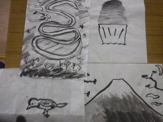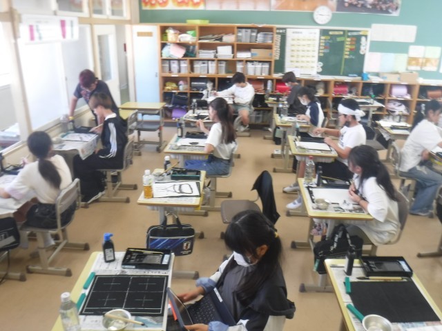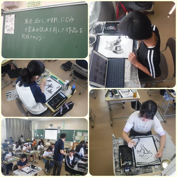 違いました。図画工作で水墨画の技法を活用して作品作りをしているところでした。