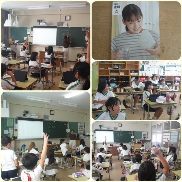 1組は理科の授業で、水は空気中に出ていくのかを映像を見て確認していました。