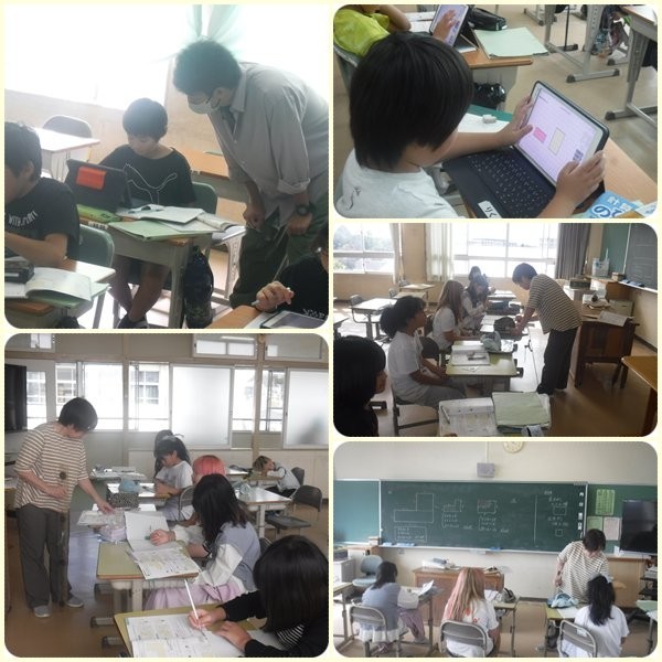 1組は2つのクラスに分かれて、1つはタブレット端末を使って考えるクラス、もう一つはノートを中心に学習を進めていました。
