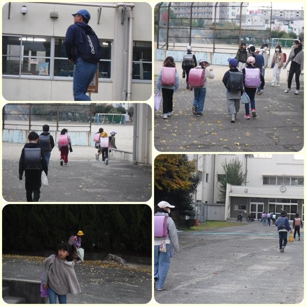 その後の集団下校では、班長や副班長を中心に、声を掛け合いながら安全に気をつけて下校する姿が見られました。