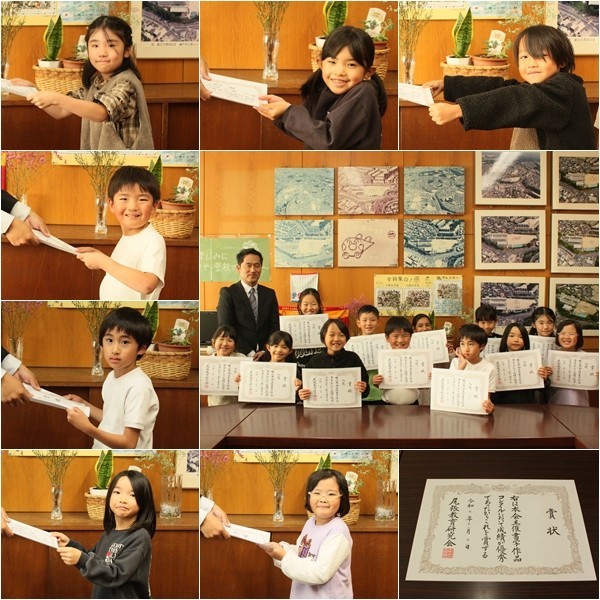 尾東納税貯蓄組合連合会主催の「小学生の税に関する書写展」において、入選した児童の表彰を行いました。おめでとうございます。