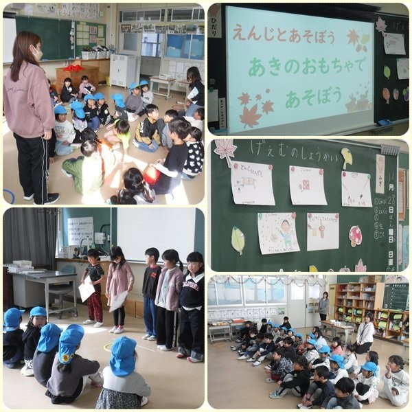 その後は、生活科で作ったおもちゃで園児を遊ばせてあげます。園児に優しく寄り添う姿から1年生の成長を確かに感じることのできる時間となりました。