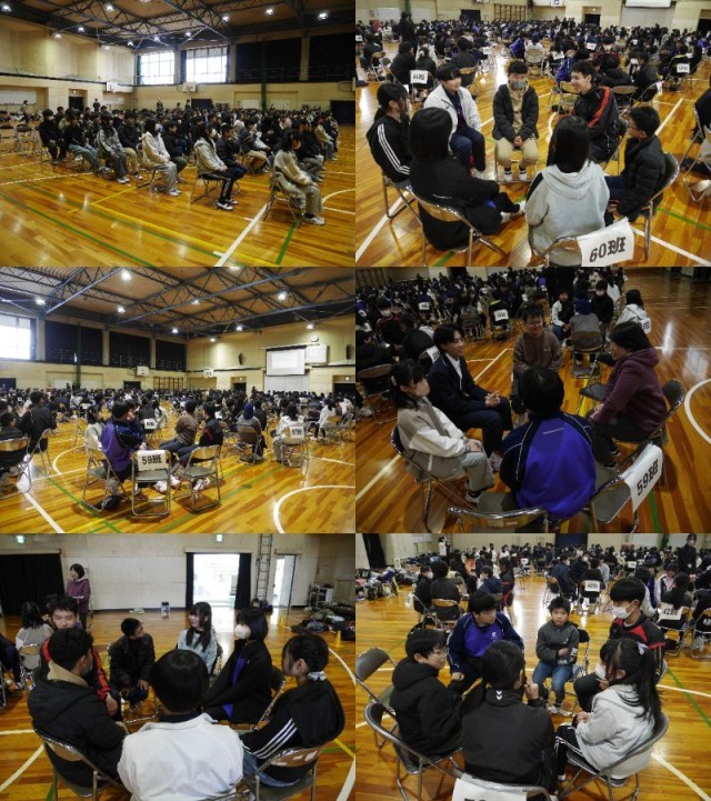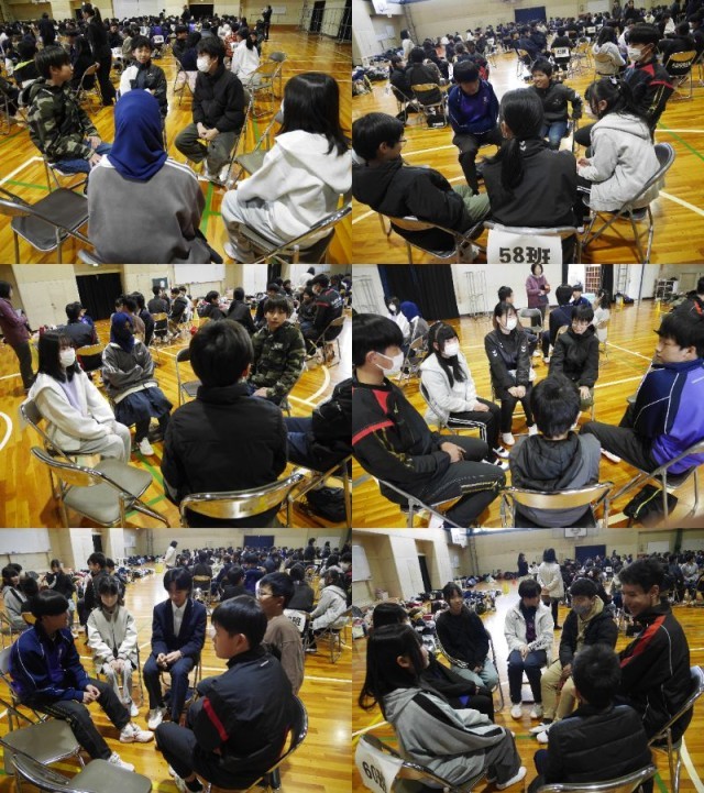 幡山中学校への進学を予定している6年生児童が、学校説明会に参加しました。中学1年生と3年生の授業を見学した後、体育館で中学2年生と「ハタトーク」や「アドジャン」を通して交流しました。