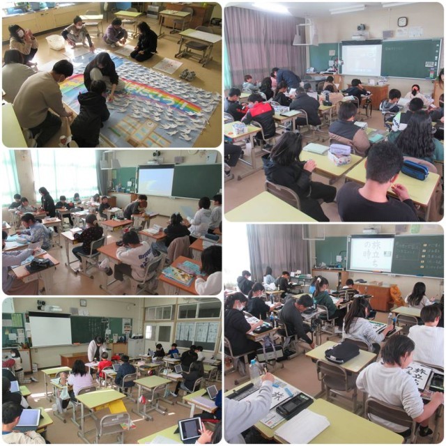 太陽学級では、2月6日に予定されている授業参観に向けて掲示物づくりをしていました。
