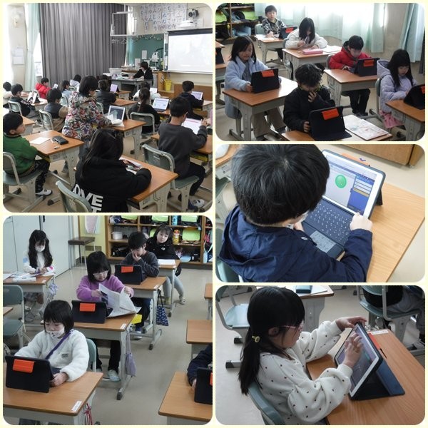 2組は、タブレット端末を使って1年の総復習です。しっかり復習して2年生に上がりたいですね。
